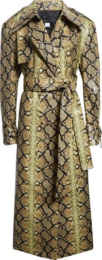 Make a striking statement in this shiny snakeskin-embossed trench coat that's both edgy and sophisticated, instantly elevating any look.