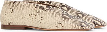 Snakeskin-embossed leather amplifies the contemporary sophistication of this outfit-making square-toe flat.