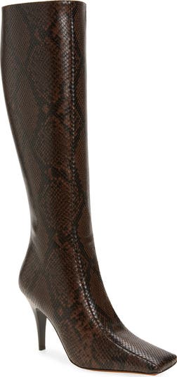Stella embraces the squared-off pointed-toe silhouette for her fall '25 footwear designs, giving an elegant elongated look to this knee-high boot set on a stiletto heel. It's handcrafted in Italy from the house's impressively realistic snakeskin-embossed YATAY M—a mycelium-based, animal-friendly alternative to leather.