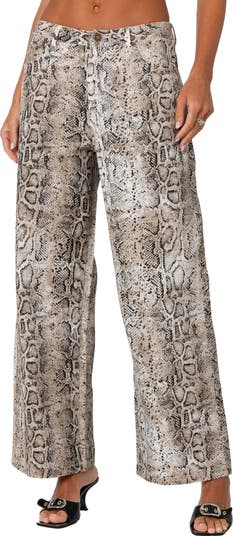 EDIKTED Snakeskin Print Low Rise Wide Leg Jeans