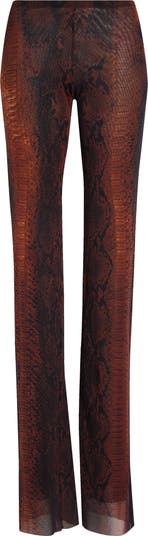 Snakeskin Print Mesh Flare Pants