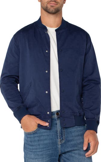 Tonal snaps punctuate the streamlined design of this lightly padded bomber jacket crafted from stretch-infused cotton.