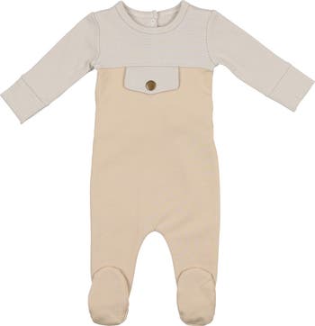 Manière Snap Pocket Cotton Blend Footie, Main, color, Tan