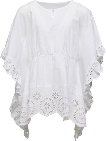 Your kiddo will be exuding all good vibes in this tiered cover-up dress made of soft cotton with ruffled trim featuring delicate eyelet embroidery.