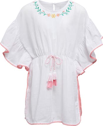 Get your kiddo ready to spend a day by the water in this breezy cotton cover-up dress patterned in colorful embroidered details.