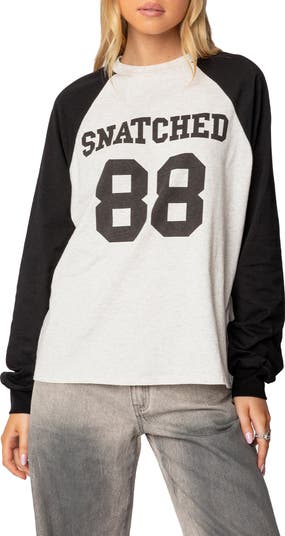 EDIKTED Snatched Oversize Baseball Graphic T-Shirt, Alternate, color, Gray-Melange