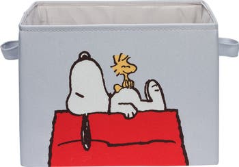 Snoopy to the Rescue! Conquer nursery chaos with this adorable foldable Snoopy storage. Sized at 12 ½” X 11” X 9” this space saving storage basket folds flat when not in use. The front and back features Snoopy lounging on his red doghouse with Woodstock perched comfortably on his tummy. Made of high-quality polyester canvas with two sturdy carrying handles making it easy to transport from room to room.