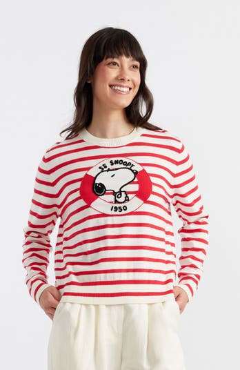 Update your weekend wardrobe with this nautical-inspired cream sweater. Finely spun from pure cotton, it features an intarsia-knitted Snoopy inside a lifebuoy. Wear this classic-fit style with everything from track pants to jeans.