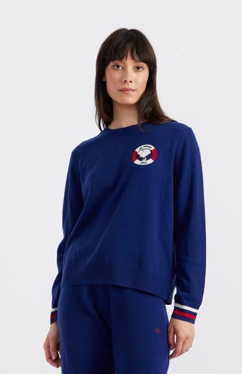 All aboard! Inspired by life at sea, our latest collaboration with Peanuts is perfect for the warmer months. This blue wool and cashmere-blend sweater is embroidered with Snoopy inside a lifebuoy – a perfectly charming addition to your off-duty repertoire. Note, the contrast trims at the sleeves.