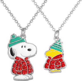Share the smiles. This Peanuts 2-piece necklace set pairs a Snoopy charm with a matching Woodstock—perfect for best friends or layering together. Silver-tone chains, colorful enamel, and adjustable extenders make everyday styling easy.