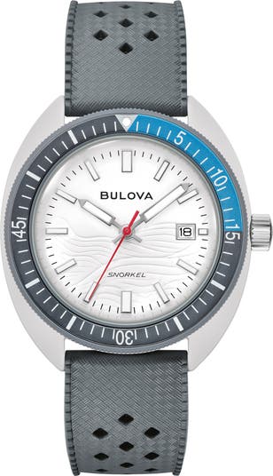 Sharing DNA with the brand's classic Oceanographer watch, the Snorkel keeps the look Caribbean beachy with pastel pastiche and an attitude of gratitude for sea turtles with its durable, lightweight and smooth hybrid-ceramic case.