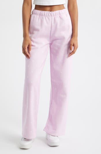 A flurry of snowflakes brings warmth to these soft cotton-kissed sweatpants made with leg-elongating wide hems.
