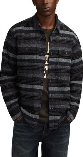 Snowy flecks add dimension to this striped flannel shirt cut from pure cotton.