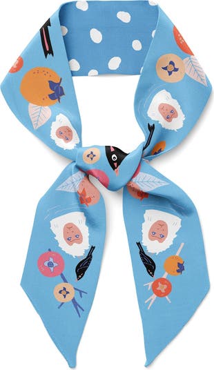 PY4598 100% Twill Silk 2.5 in x 45 in / 6 cm x 114 cm Double Sided Illustrated by hand in California by Cris Rose-Guizar Ethically sourced Weight: 1.0 oz Last year I had the chance to visit Japan s country side. Nagano was a dream, saturated with fall colors, beautiful persimmons trees and happy bathing snow monkeys, can t wait to go back, in the mean time, come with me, with this timeless accessory full of nostalgia. Jā Matane!