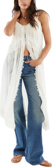 Headline your festival 'fit with a maxi-length top romanced with sweet pleats, lacy bits and dainty buttons.