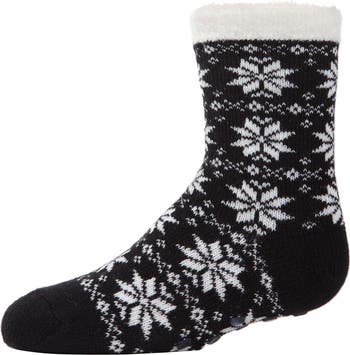 A pillowy treat for her feet. Our Snowflake Plush-Lined Cozy Socks are a dream come true. Like walking on clouds, feathered fabrics will give her a soft and cushioned feel for when she needs it most. This fuzzy pair is thicker than a typical sock, Crafted from a thick and warm acrylic blend, and finished with a buttery soft plush lining on the inside. Designed with light stretch and super cozy yarns for a non-binding wear that's ideal for napping, lounging, and everything in between.