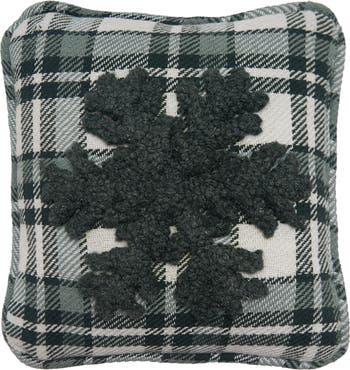 Invite the beauty of the great outdoors into any home with the Snowflake Hooked Mini Pillow. This cozy pillow showcases a delightful forest green plaid design, featuring a hooked snowflake in the center that captures the essence of wintertime and rustic living. The textures and plaid help to celebrate the spirit of the wilderness with this delightful accent, perfect for holiday, rustic, or everyday decor.