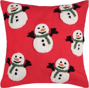 - Enhance your living room, bedroom, or entryway with festive winter charm using this 18" x 18" Snowman Party hooked Christmas throw pillow, designed to bring warmth and cheer to sofas, chairs, and beds throughout the holiday season.