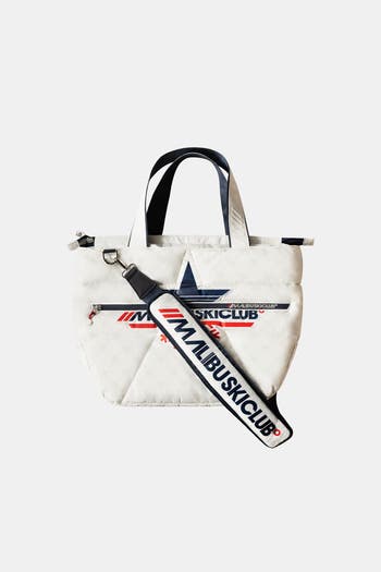 The signature Malibu Ski Club tote is crafted from distinctive monogram fabric and shaped into a functional silhouette. With its alpine-inspired aesthetic and perfectly balanced proportions, the Snowstar Tote combines effortless practicality with cutting-edge design. Instantly recognisable, it’s a Malibu Ski Club essential from the slopes to the city.