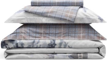 - The duvet cover is double-sided: the reverse side is decorated with a classic plaid in cozy blue and brown.