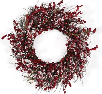 Simple and monochromatic, this snowy ilex berry wreath is perfect for the more contemporary home. See also the coordinating garland.