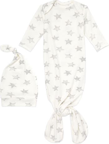 This incredibly soft set pairs a knotted gown with a matching hat and is a perfect baby shower gift.