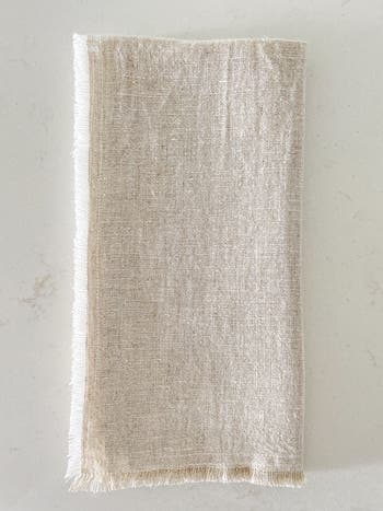 The So Soft Linen Fringe Napkins are packaged in a set of 4 and finished with a self frayed edge. This napkin set is an elegant staple for any tabletop occasion whether casual or formal. Each color is packaged as a set of 4 and tied with a nautical rope detail. Color: Bright White, Natural Beige, Navy Blue, Chambray Blue, Aqua, Sky Blue, Beige Pinstripe, Blue Pinstripe. Dimensions: 20" squared. Material: 100% Linen. Machine Wash Delicate with like colors. Hang to Dry. Imported.