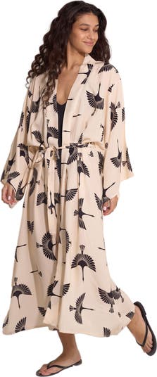 Glide through sun-soaked days in the Soar & Shore Robe Cover-Up. Featuring long wide sleeves and a removable tie belt.
