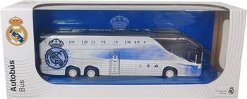 Bring the legacy of Real Madrid to your collection with the Real Madrid Soccer Tour Bus. Officially licensed and styled with the club's iconic colors and crest, this detailed team bus captures the excitement of match day travel. Whether for imaginative play or display, this collectible vehicle is perfect for both fans and collectors. Celebrate La Liga glory and Champions League dreams with a toy that drives your passion forward - ¡Hala Madrid!