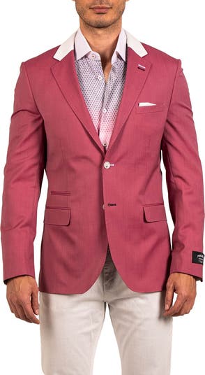 Contrast details stand out on a summery blazer fashioned from fine virgin wool and finished with an elevated pocket square sewn into the chest pocket.