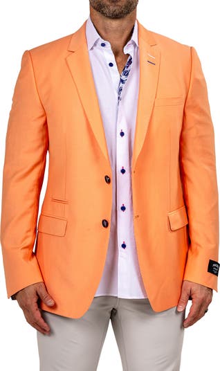 A vibrant hue boldly styles this sport coat tailored in a physique-hugging fit with pops of contrast and a pull-out pocket square at the chest. It's crafted with a convenient pocket to keep your smartphone stowed and easy to access when you need it.