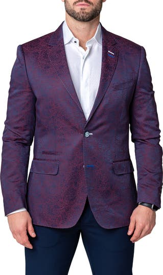 Colorful damask filigrees elevate a sport coat tailored in a physique-hugging fit with pops of contrast embroidery and a pull-out pocket square at the chest. It's crafted with a convenient pocket to keep your smartphone stowed and easy to access.