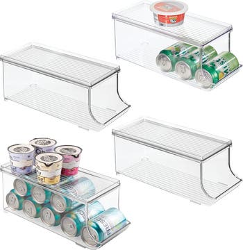 Soda Can Organizer with Lid for Pantry or Refrigerator - Set of 4 - Clear