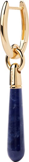 Gold-plated single hoop with a royal blue gemstone drop pendant