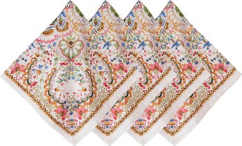 Set the stage for an enchanting tablescape with this quartet of sateen napkins that spring to life with a fantasy garden worthy of a fairy tale.