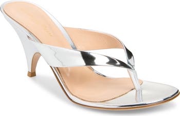 Crafted in Italy from gleaming metallic patent leather, this round-toe flip-flop is lifted on the maison's distinctive Sofia heel, a perfect blend of modernity and retro spirit.