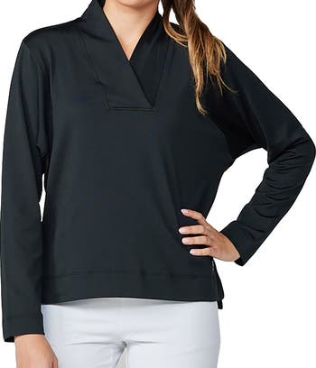 The Sofibella Staples Women's Golf Pullover is the ultimate blend of style and performance for golf enthusiasts. Crafted with a keen eye for fashion, this pullover boasts a sleek design that effortlessly transitions from the golf course to post-game gatherings. Its moisture-wicking fabric ensures you stay comfortable and dry even during intense swings, while the four-way stretch material provides unhindered freedom of movement. With its relaxed fit and attention to detail, this pullover elevates your golf game and keeps you looking chic on and off the green. Say hello to your new golfing essential!