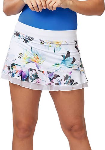 Rock the court in style all while performing your best with The Sofibella UV Doubles Tennis Skirt. It comes in colorful prints with an elastic waistband for a comfortable fit and a built-in shortie. There is also an - technology that will keep you smelling fresh in sticky situations.