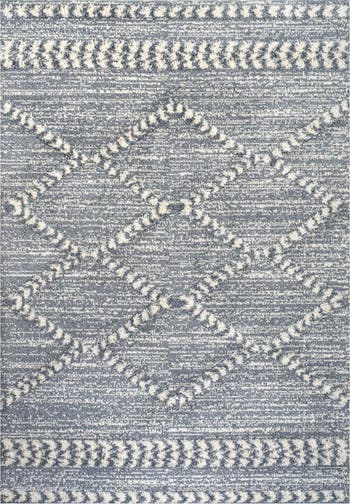 Mingled threads form diamond trellis on this modern version of a Moroccan rug design. The geometric pattern is practical for busy families, and adds texture to the living room, bedroom or home office. This versatile rug fits in anywhere, from a modern, minimalist interior to a Boho loft or coastal cottage.