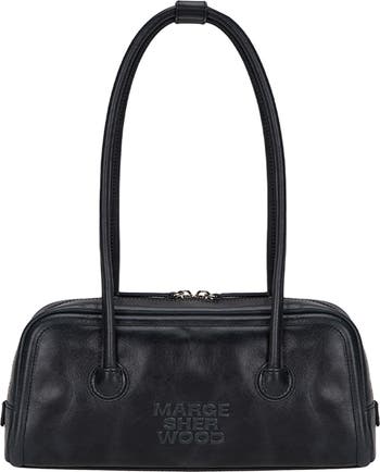 A baguette shape and elongated straps bring modern dimension to this leather shoulder bag finished with an interior zip compartment for easy organization.