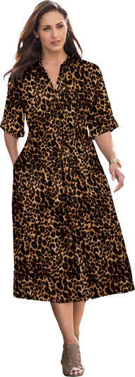 A casual-chic button-front shirtdress with a fit-and-flare skirt with a self-tie belt is perfect for any occasion.