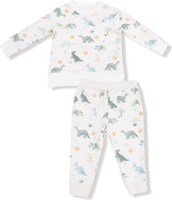 Stretchy organic cotton will have baby lounging in comfort when they don this dino-themed set.