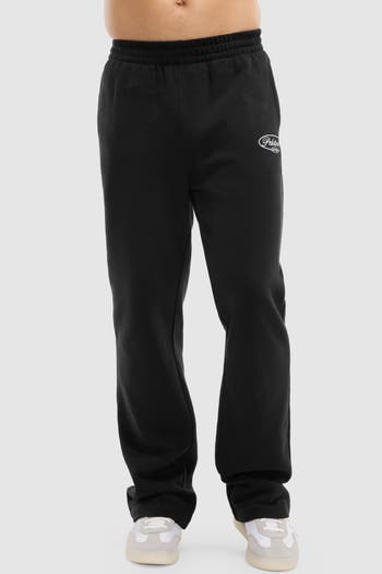 Gender neutral, cotton fleece straight-leg pant with side pockets and elastic waistband with interior drawcord.