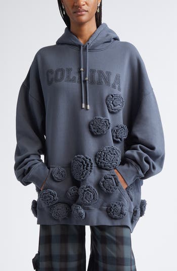 Soft Floral Appliqué Oversize Logo Graphic Hoodie