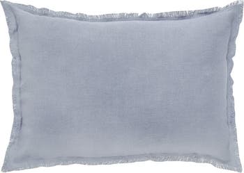 Our Blue Pinstripe Fringe Linen Pillow is Soo soft- you won't believe it's linen! This yarn has a slight nub which gives it a beautiful natural texture. Edges have a self-fringe on all sides. Details. Front & Back Color: Blue & White Pinstripe. Front & Back side: 100% Linen (washed) Concealed zipper closure on back side. Hand washing or a delicate cycle with like colored fabrics recommended. Hang to Dry. Made in India