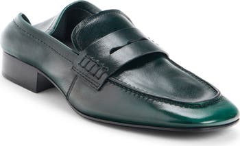 The soft, supple leather fabrication of this Italian-crafted penny loafer contributes to the fold-down heel design that enables the shoe to also be styled as a mule.