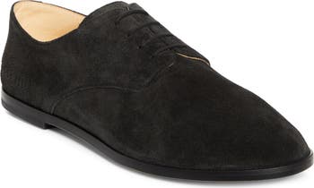 Low-key yet luxe, this velvety Italian-suede version of a polished plain-toe derby is minimally branded by debossed style, size and color codes near the heel.