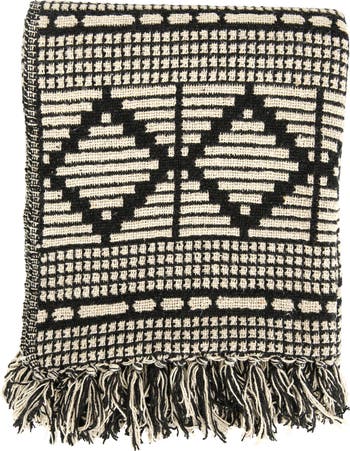 Enhance the home with this reclaimed cotton blend throw with a diamond pattern and fringe in black and beige. This throw blanket features a diamond pattern that creates a natural and native feel. The fringe trim adds texture and movement to the edges of the throw. The black and beige color is neutral and elegant and can match any color scheme or theme. This throw blanket is ideal for adding a natural and native feel to any room, whether rustic, boho, or modern decor. Use it to decorate the sofa, bed, chair, or bench. It is made from a reclaimed cotton blend, a sustainable and comfortable material that is good for the environment and the skin. The throw blanket measures 60 inches long by 50 inches wide, a versatile size for draping or covering. Just machine wash cold and tumble dry low to keep it clean and fresh. This throw is lightweight , making the home more stylish and comfortable.