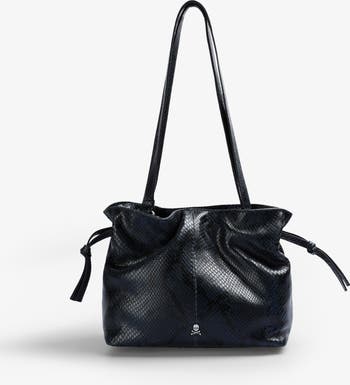 - inner pocket and short handle. Adjustable knot detail. Front metallic logo patch.