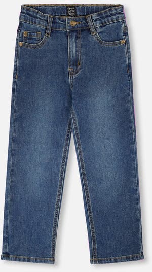 The stretch jeans in denim are a wardrobe essential that combines durability with everyday comfort. Crafted in soft stretch denim, these bottoms feature front pockets, a button closure, and subtle faded effects that add a stylish worn-in look. Perfect for boys who love to move, these jeans offer flexibility and a classic fit for all kinds of adventures.